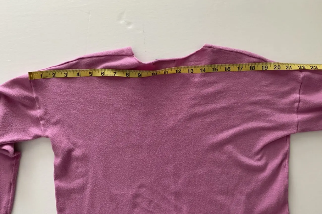 Shoulder to Shoulder: For tops, dresses, and jackets. Turn the garment face down. Measure straight across the back from the tip of one shoulder seam to the tip of the other.