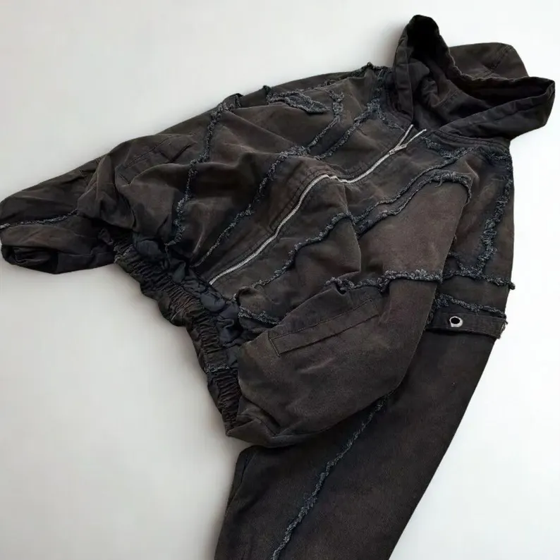 Appliqués take the statement further. These are fabric pieces stitched onto the base garment, creating three-dimensional texture and visual weight. Think sewn-on patches, layered fabric shapes, or embroidered elements that physically protrude from the hoodie’s surface . This technique connects directly to punk’s handmade origins—the tradition of customizing jackets with patches that tell personal stories.
