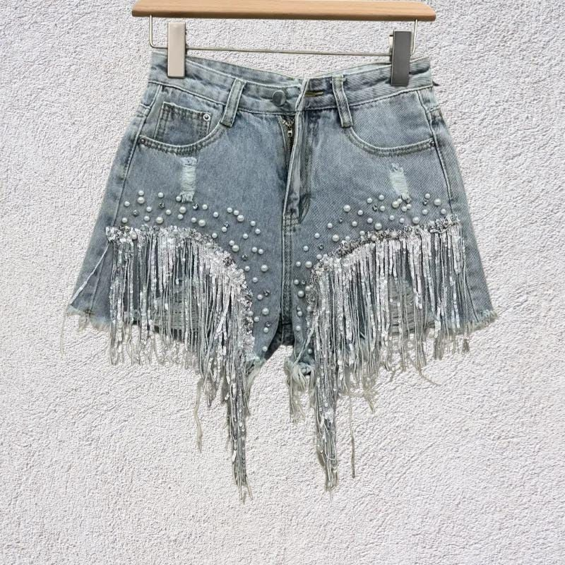 Embroidery, patches, sequins, and other decorative elements add novelty to classic denim shorts.